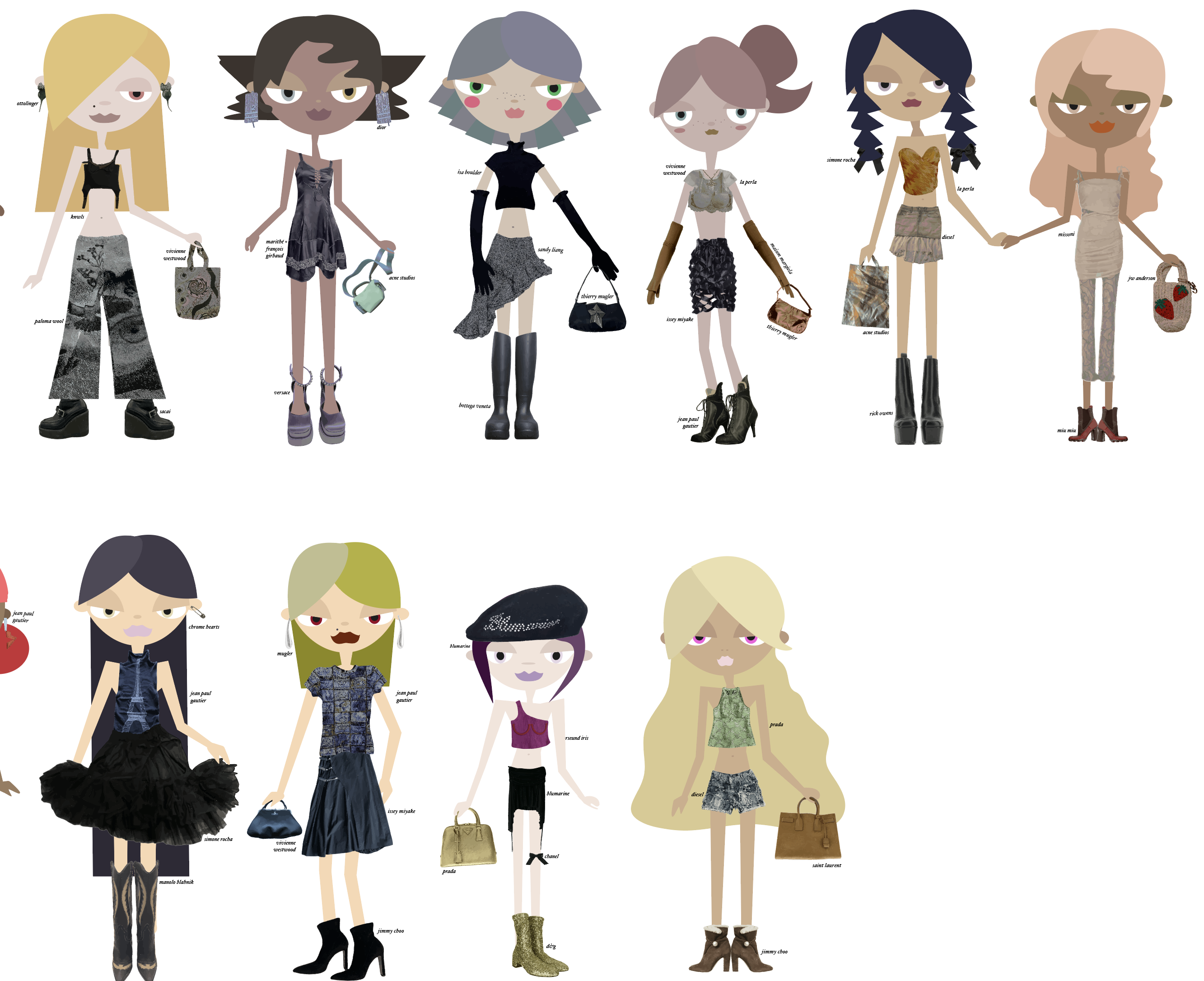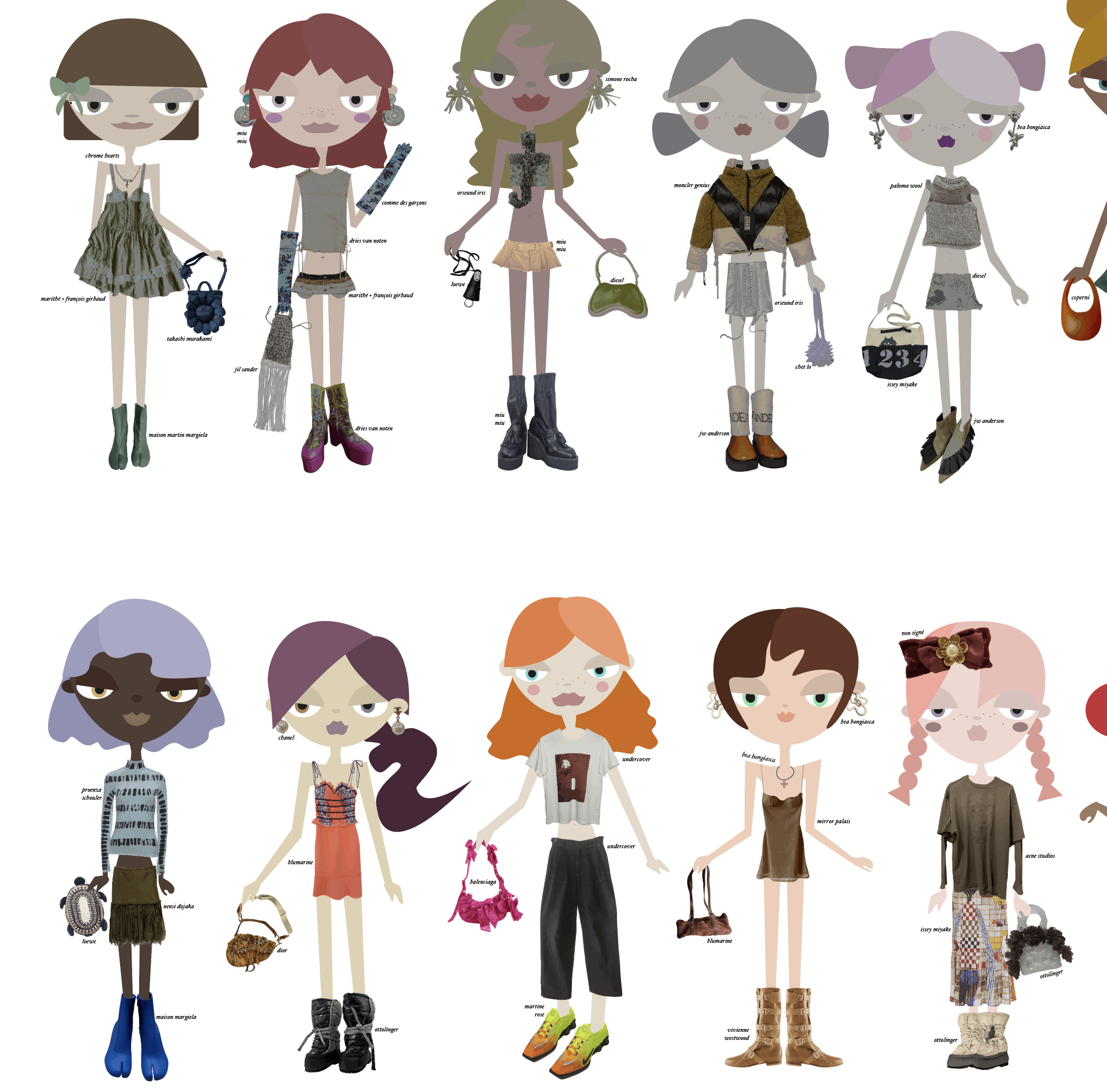 ¶vectorized vintage finds from the vestiaire collective app, styled on characters created for a dress up doll animation